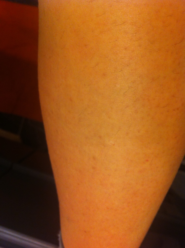 3 mois après mes 9 séances d’épilation au Lumea de Philips, voici l’état de mes jambes après 2 semaines sans y toucher (après multiples séances d’épilateur électrique durant l’été) (oui oui, j’ai poussé le test à fond, mais rassurez-vous, je cours à la salle de bain !!)