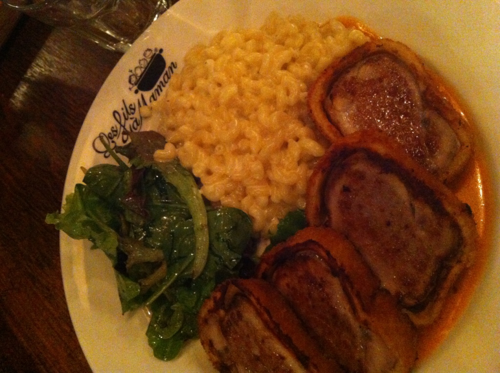 Pour ma part, j’ai opté pour un filet de veau pané et ses coquillettes au jus de chorizo. Et c’était vraiment bon ! Le veau était en réalité juste en croute, donc pas trop pané non plus. La juste dose. Je pensais par contre que la sauce au chorizo aurait été plus marquée.