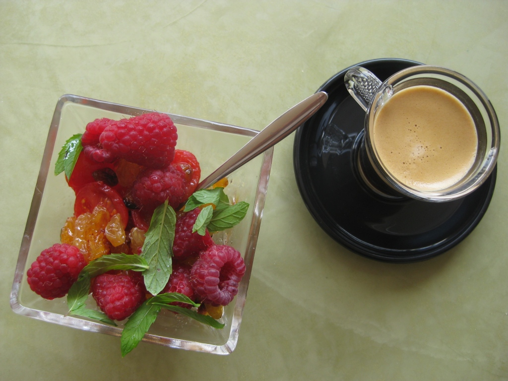 Douceur de tomates rôties, raisins golden et framboises