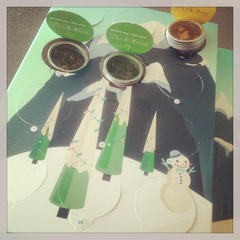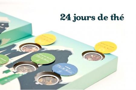Ma sœur, qui vit au Canada, m’a cette année rapporté une bien drôle de surprise dans sa valise en venant me rendre visite un peu avant les fêtes… En effet, ce n’est rien d’autre qu’un calendrier de l’Avent qu’elle m’a offert, toute contente de sa trouvaille ! Et je dois dire qu’elle n’avait pas tort de se sentir si contente, car c’était réellement une vraie trouvaille : un calendrier de l’Avent version thé ! Oui oui. Alors effectivement, cette année, on a vu fleurir des tonnes de choses extravagantes dans le nouveau cru de calendriers de l’Avent… mais rassurez-vous, vu la date, je vais m’abstenir de m’étendre sur le sujet.