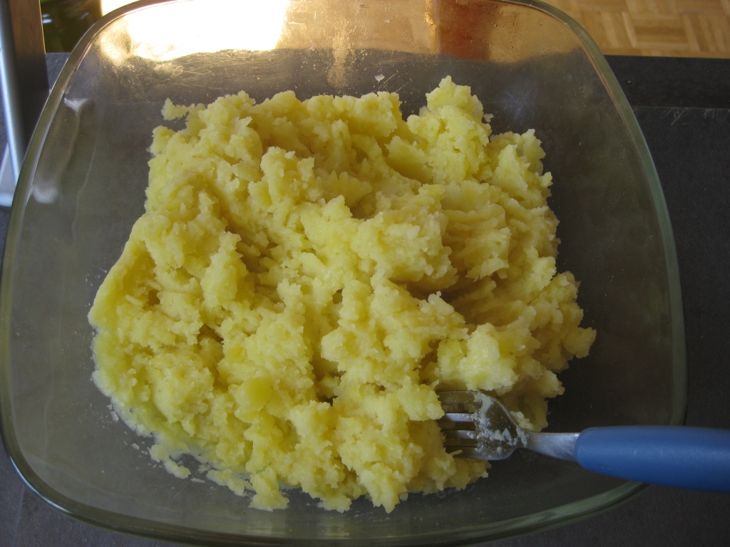 • Les éplucher, et les réduire en purée. Les vrais de vrais feront ça avec un presse purée. Mais comme je vous ai dit qu’il ne nous fallait aucun matériel, de mon côté, je suis restée à la fourchette.