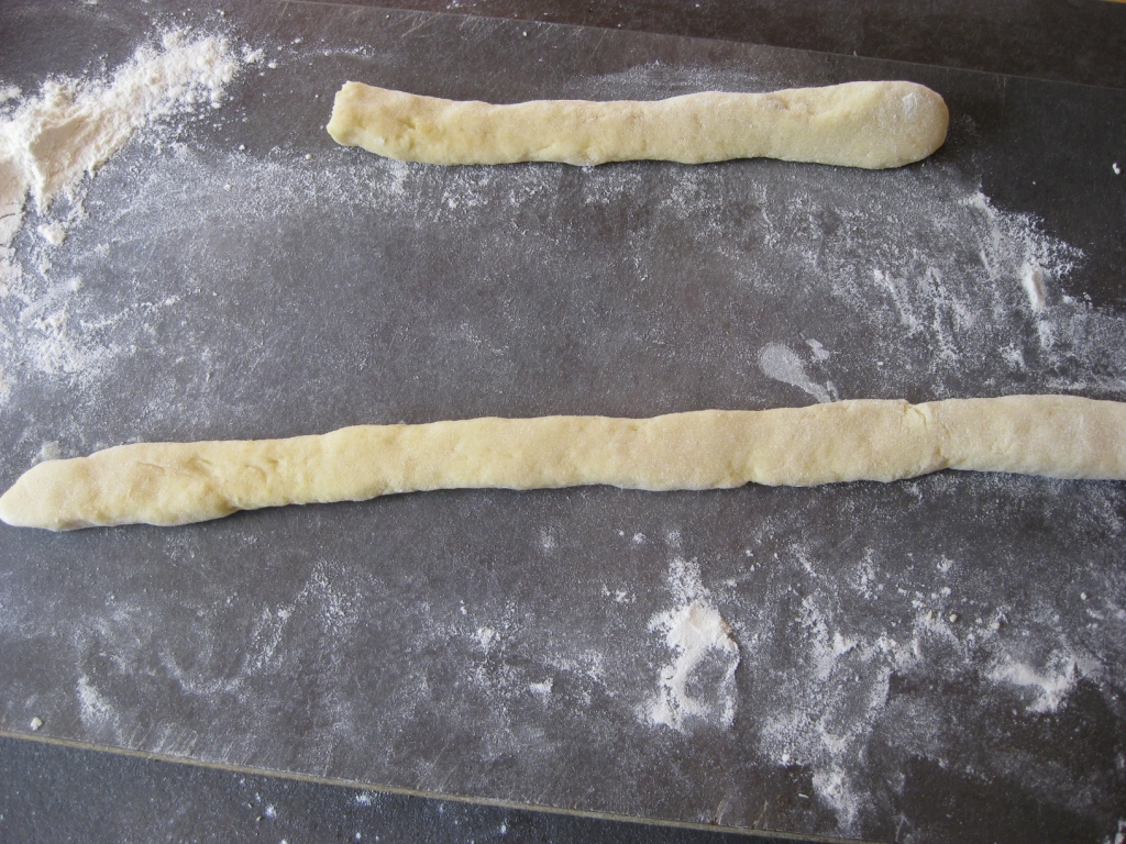 • Ensuite, il va falloir façonner vos gnocchis. Pour ça, j’ai fait des boudins avec ma pâte et j’ai ensuite coupé en petit tronçons pour en faire des mini boules.