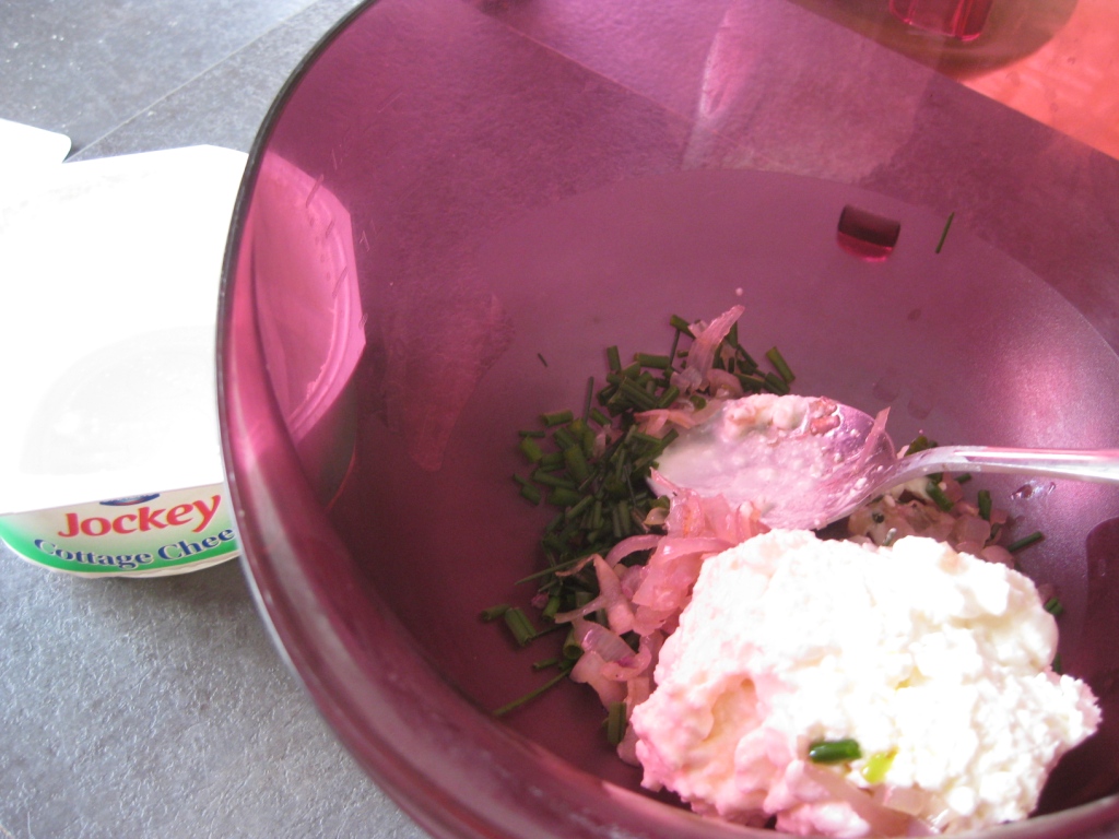 • Mélanger le tout à 150g de cottage cheese. Saler, poivrer.