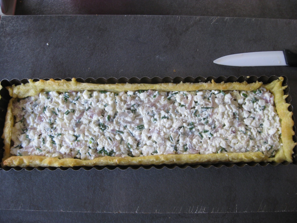 • Dans un bol, mélanger 1 œuf avec 10cl de lait, du sel, du poivre. Verser sur la tarte pour lier le tout.
