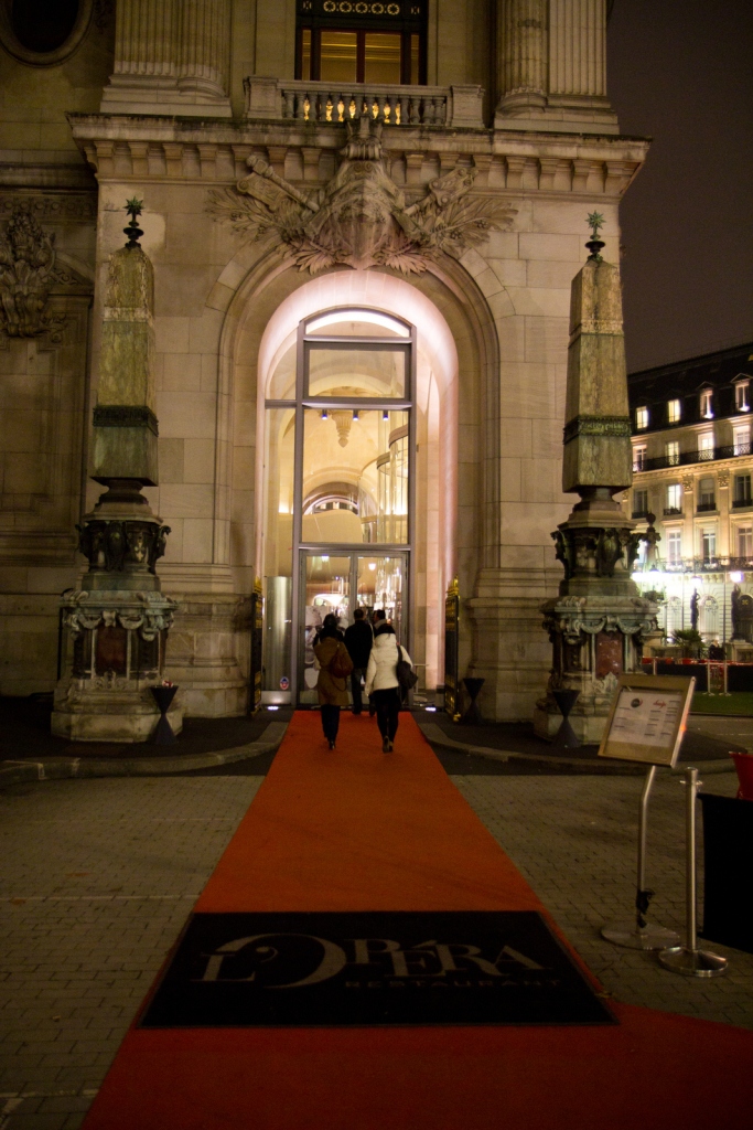 Pour finir, j’ai digéré ma/notre défaite en sirotant une coupe de champagne, tranquillement attablée au restaurant “l’Opéra”, dans l’enceinte même du bâtiment du même nom. D’ailleurs, j’ai failli oublier de vous raconter, mais juste avant ça, je me suis aussi fait déposer à notre lieu de rendez-vous par un gentil chauffeur au volant de sa 2 Chevaux glaciale mais si sympathique !