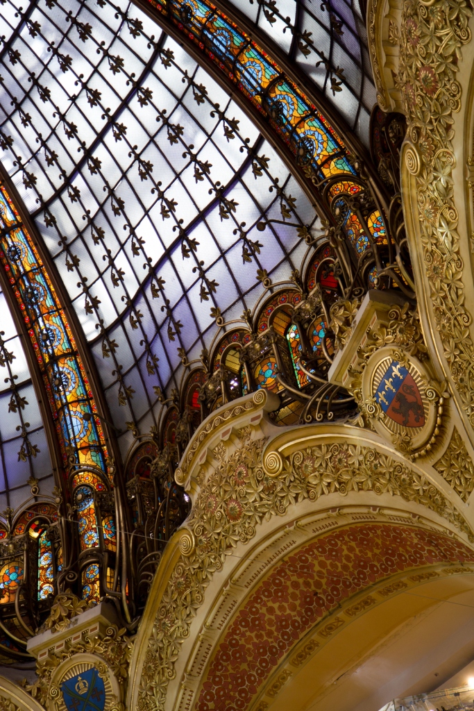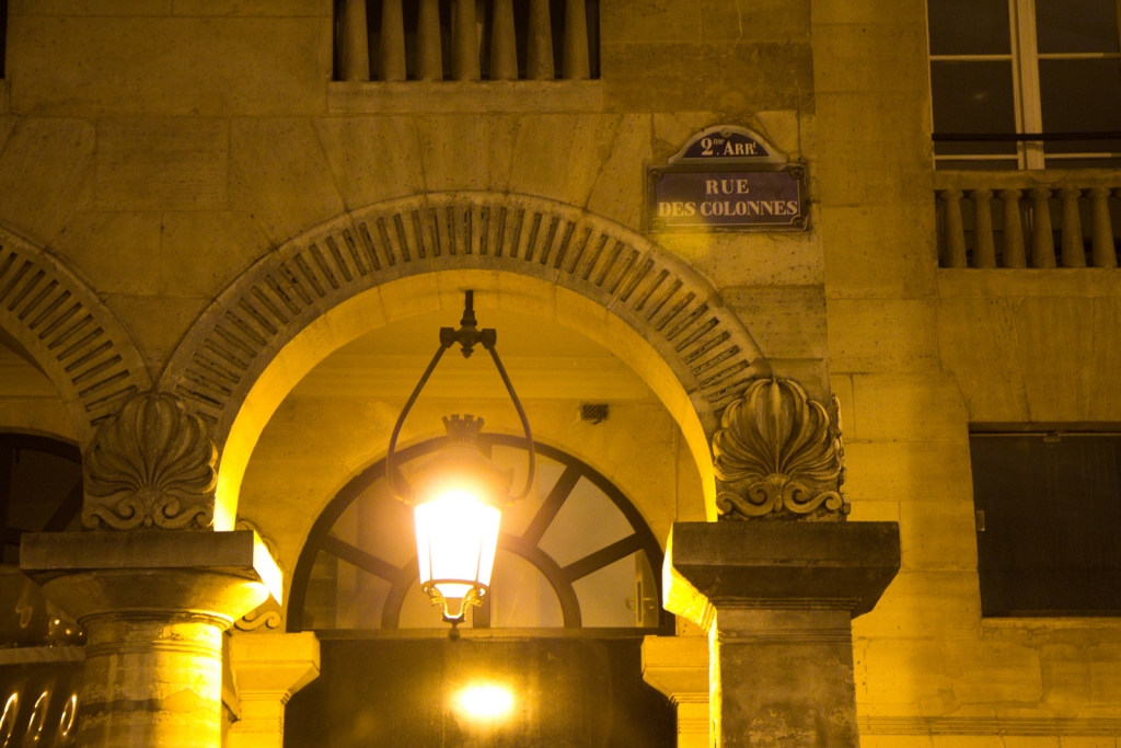 J’ai admiré la coupole des Galeries comme je ne m’y étais jamais attardée (coupole de vitrail édifiée en 1912 par l’architecte Ferdinand Chanut et le maître verrier Jacques Gruber) et j’ai écouté quelques histoires sur les débuts de ces mêmes Galeries (grâce à l’exposition à la Galerie des Galeries, lieu dont j’ignorais toute existence…). J’ai soutenu qu’un avion s’y était posé, mais on ne m’a pas crue… et j’avais pourtant raison. J’ai par contre compté un peu vite le nombre de colonnes de la rue des Colonnes, sans voir qu’elle continuait après le carrefour… mais on s’en fiche, parce qu’on a bien rigolé en dérangeant un groupe de jeunes tranquillement installés à la terrasse d’un bar pour leur demander de nous prendre en photo, au beau milieu de la ruelle, pour imiter les Beatles cette fois-ci !