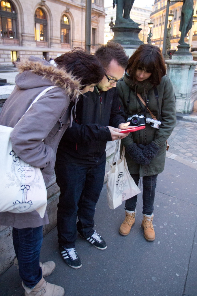 Au programme de l’après-midi ? Un jeu de piste à travers le quartier Opéra. Jeu de piste un peu particulier puisque c’est une tablette qui nous a guidés, et imposé notre itinéraire, tout en nous soumettant à certains défis, photos, vidéos, et autres énigmes ont donc rythmé notre après-midi ! L’occasion de re-découvrir ce magnifique quartier d’une façon toute nouvelle.