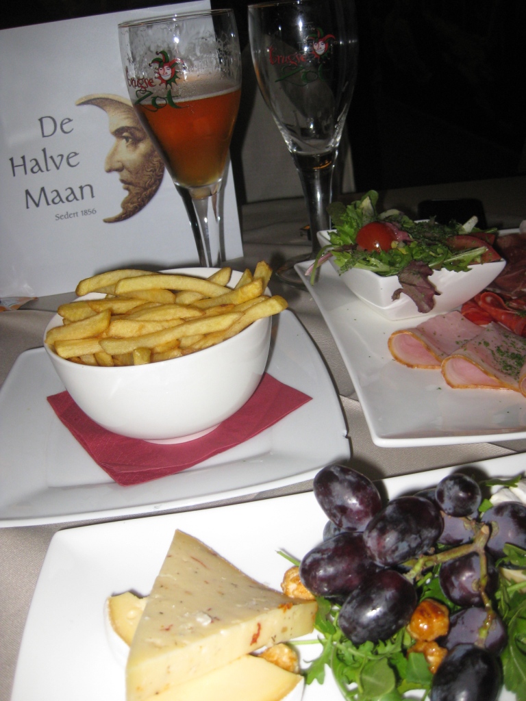 - Le restaurant de la brasserie De Halve Maan : De notre côté, nous avons, de plus, opté pour déjeuner sur place. Une très bonne adresse à retenir ! L’idéal est donc de faire la visite de la brasserie sur les coups de 11h pour être sur place à l’heure du déjeuner. Vous pouvez ainsi profiter de votre session de dégustation assis à une table, ce qui, à priori, n’est pas donné à tout le monde tant la foule et les groupes se pressent pour découvrir cette brasserie ! Le tout accompagné d’un plat flamand ou encore de “planches” de charcuterie ou de fromages. Un peu moins typique, je vous l’accorde, mais juste parfait pour profiter d’un moment de détente autour d’un bon verre (et nous avons tout de même craqué pour le bol de frites…) !