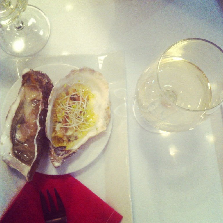 Amuse-bouche : chaud froid d’huitres accompagnées de son Riesling