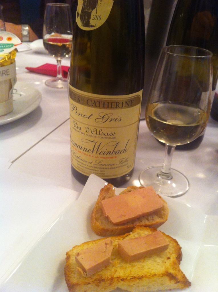 - Pinot Gris Cuvée Sainte Catherine 2010 – Domaine Weinbach (Mon vrai coup de coeur de la soirée ! Moi qui pensais pourtant être davantage attirée par le “plus sucré”, le comparatif réalisé ce soir là m’a aidée à mieux définir mes goûts !)