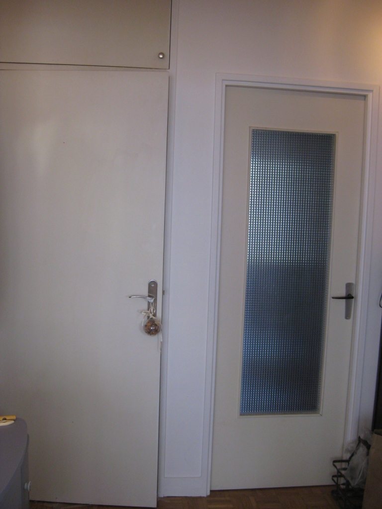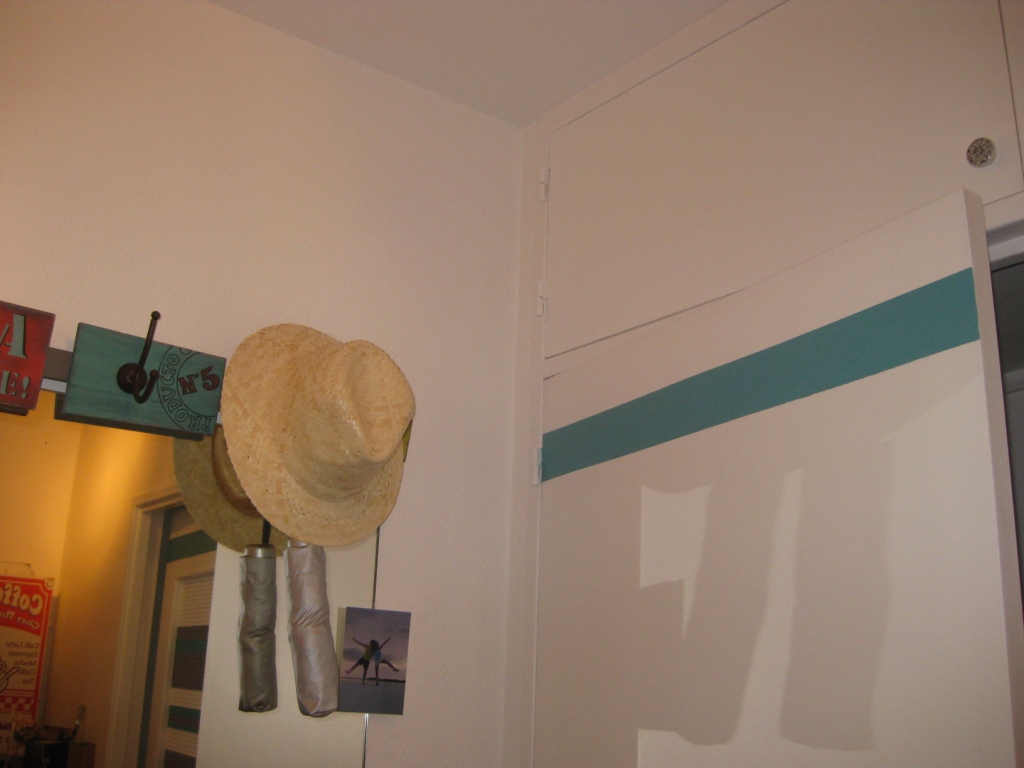 Et puis… comme cela ne me suffisait pas, j’ai finalement décidé de faire aussi une bande sur l’autre porte, histoire d’assurer la cohérence entre les 2, mais aussi la continuité avec la fameuse patère sur l’autre mur.